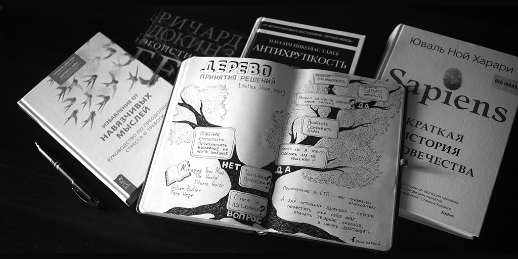 У меня есть частная практика, я специализируюсь на тревожных расстройствах, много консультирую, работаю с клиентами, постоянно учусь и стараюсь сделать наглядными те психологические идеи и принципы, с которыми сталкиваюсь в работе. Поэтому на этом сайте вы найдете большое количество рисованных конспектов, посвященных преодолению тревоги, повышению самооценки и уверенности в себе, стратегиям принятия решений и продуктивности. В разделе Скетчи есть целые рисованные путеводители по большим темам: Прокрастинация и привычки, Зависть, Самооценка и критика, Логично и убедительно. Большая часть этих иллюстраций родилась в сотрудничестве с Полиной Тур @learnpsy.