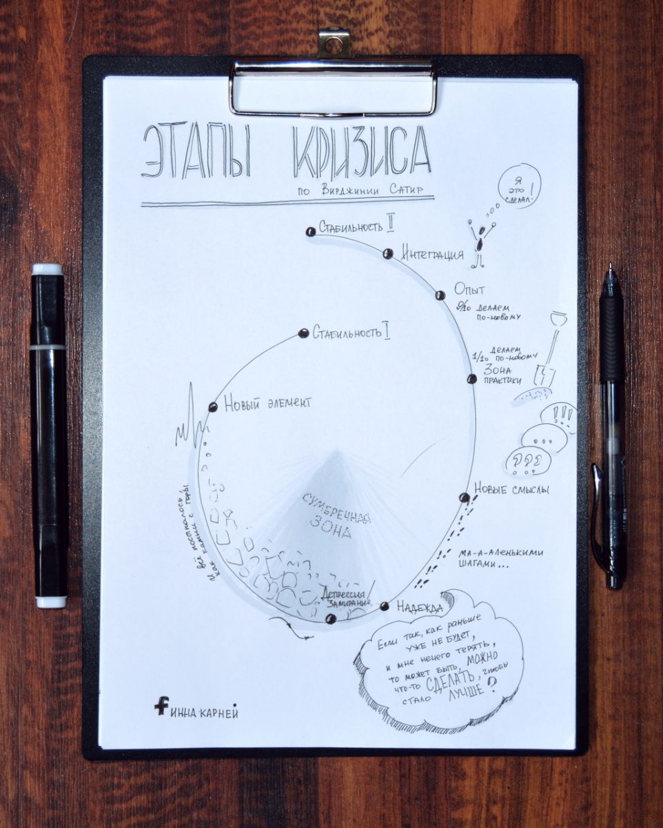 Давайте отправимся исследовать тему кризисов вместе с Вирджинией Сатир. Тем, кто находится в сумеречной зоне на спирали изменений, это знание дает надежду на скорый выход из тени. Тех, кто выбирается – может предостеречь от застревания в зоне с новыми смыслами, там достаточно комфортно по сравнению с зоной практики. Тем, кто интегрировал свой опыт и приближается к состоянию Стабильность II, напомнит, что другие люди в этот момент могут проходить нижние точки, а там совсем немного энергии и сил.