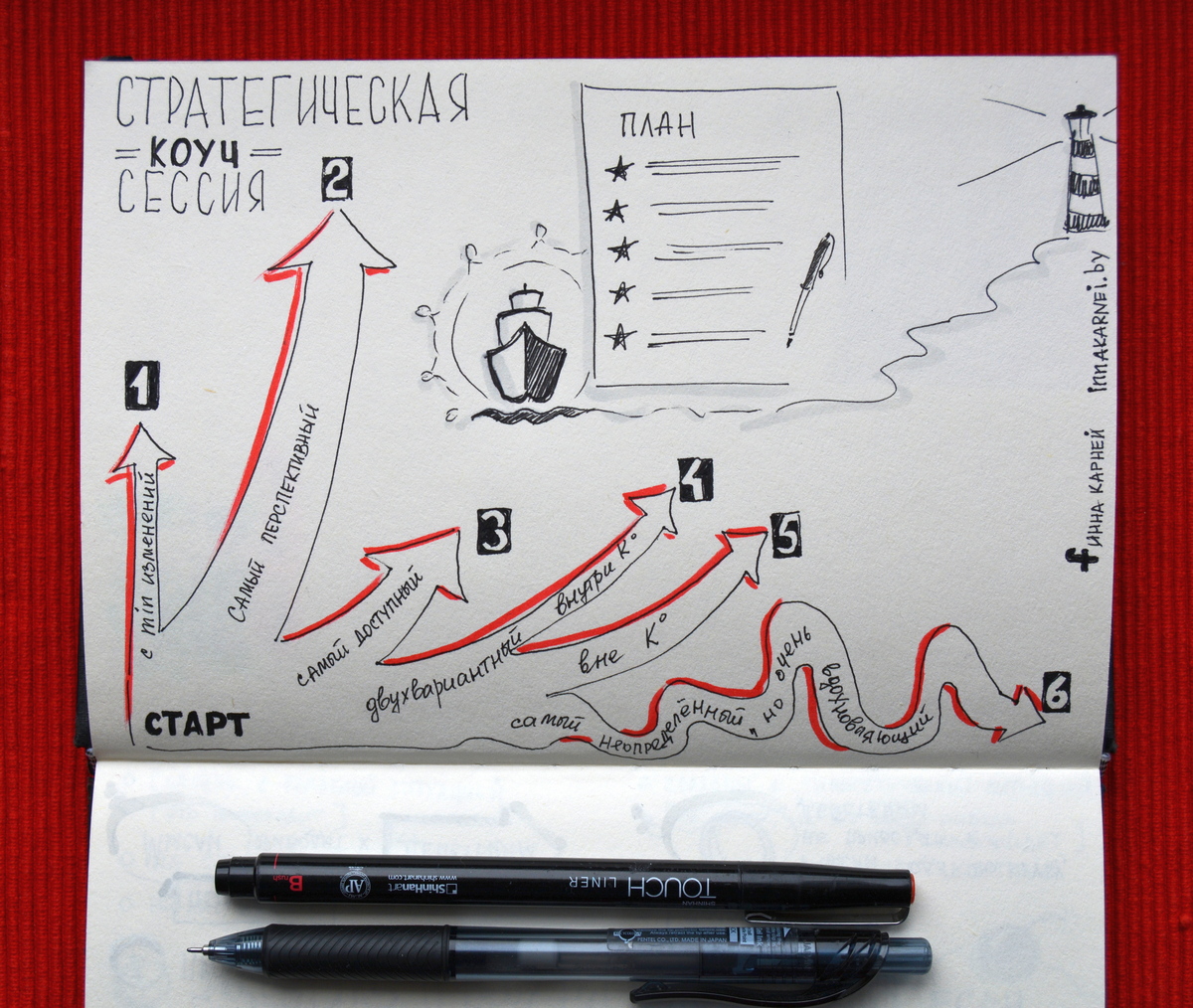 Не так-то просто пояснить, что происходит, когда два человека в рамках сессии ищут решения для стратегического запроса. Но тут попался вариант одновременно изящный и понятный в своей логике. Поэтому мы посовещались и, с согласия клиентки, я могу привести пример этот работы.